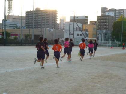 運動場では、陸上部、サッカー部、野球部の活動が見られました。