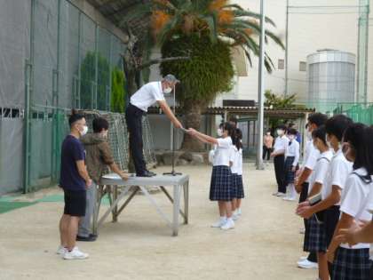 續いて、陸上部は、ヤンマーフィールド長居にて、大阪中学総体に出場し、2年男子砲丸投げで前田君が3位に入賞しました。