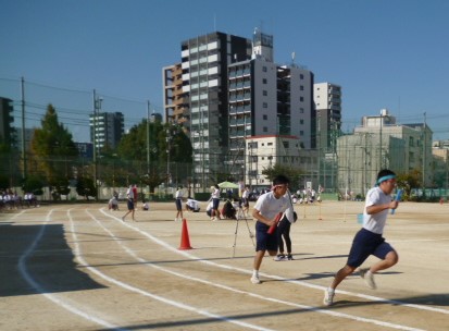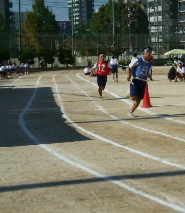 プログラム12番:女子100m×4リレー、13番:男子200m×4リレーでは、各クラスの応援を受けて、白熱したレースとなりました。