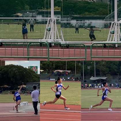 短距離勢では100mで田中君が惜しくも決勝に届かず、田中さん、松江君が追い風参考ながら自己ベストを更新しました。跳躍勢は強風で踏切を合わすのが難しかったですが、小笠原君が組でベスト8に入り、6回の跳躍を行うことができました。投擲勢では円盤投げで増田君が3位、小川君が4位に入賞、前田君も砲丸投げで9位に入りました。