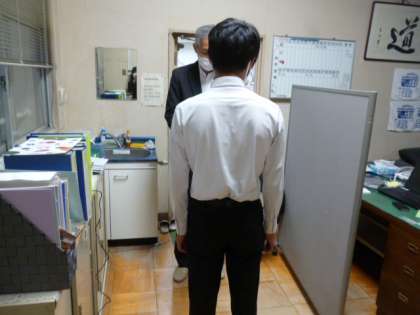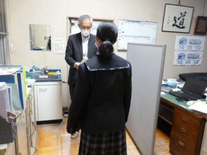 大阪市立中学校総合文化祭で表彰された、家庭科部9名、茶道部4名が、校長室で賞状を授与されました。