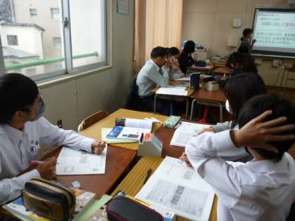 理科では、各班に1台電流計が用意されており、回路の電流を測定する方法を学んでいます。