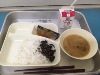 本日の給食は、さんまのみぞれかけ みそ汁 牛ひじきそぼろ でした。