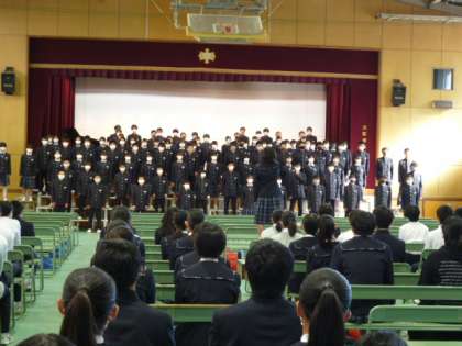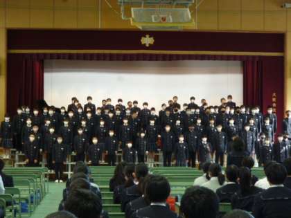 中学生となって、初めてに合唱の発表に緊張しているようでしたが、練習したことを歌声や動作でしっかり発表しました。