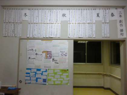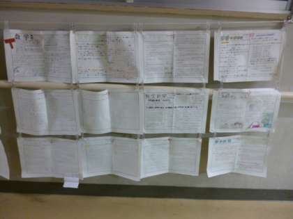 2階では、3年の国語科創作俳句、数学科数学新聞、「ウエスティをさがせ」が展示されていました。