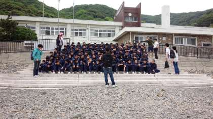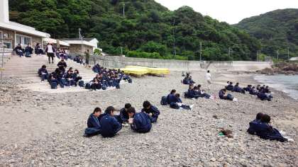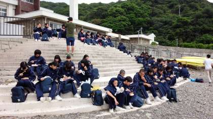 到着後、宿舎の前で記念撮影とランチタイムです。
