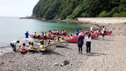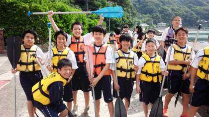 雨が上がり、ライフジャケットを着て、体験開始です!