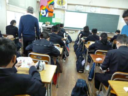 2時限目より、1年生3クラス、学級ごとに「SPトランプによるキャリア学習」を実施していただきました。