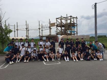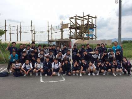 最後に、リーダーのみなさんと各学級で琵琶湖とスカイアドベンチャーをバックに記念撮影をしました。