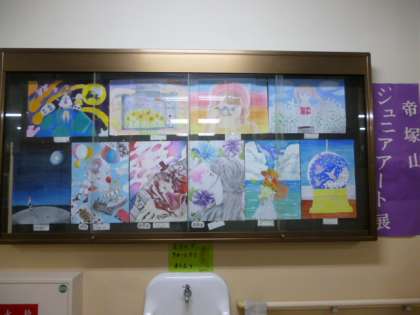 11がつから、校長室前の掲示版には、美術部が「手塚山ジュニアアート展」に出展した作品を掲示しています。どれも素敵な作品ですね。