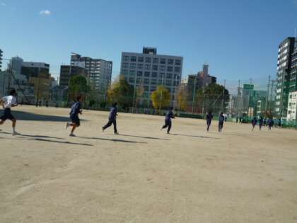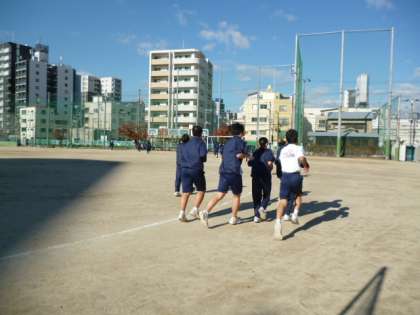 冷たい風がありますが、長距離走の練習でグランドを走る姿が見えました。
