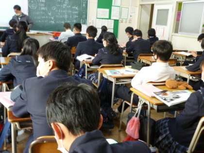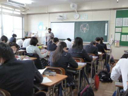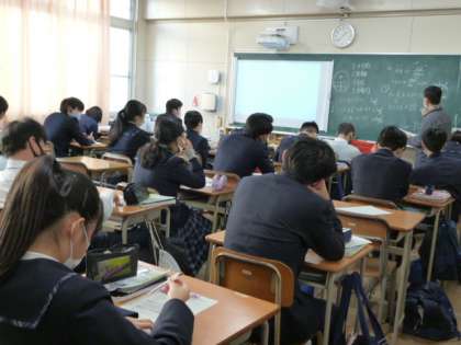 数学では、問題の答え合わせで説明を熱心に聞いています。