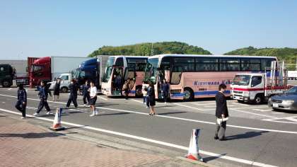 3年生は1回目のトイレ休憩のため、淡路サービスエリアに立ち寄りました。