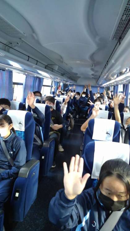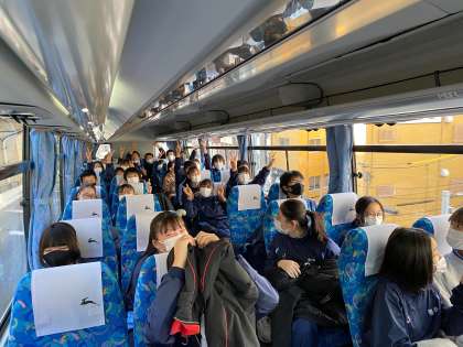 校外での活動は初めてなので、みんなもうバスから楽しそうです!