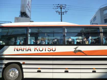 出発式のあと、バスに乗りました。万博BEASTへ出発しました。