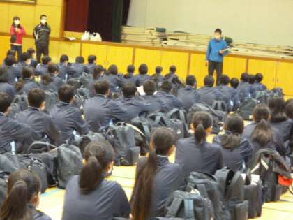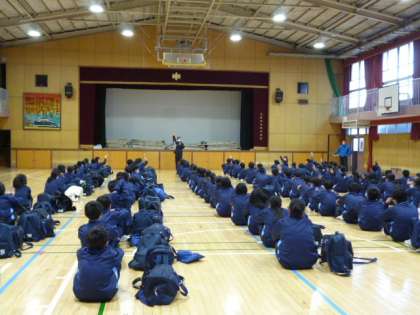 1年生を載せたバスは順調に進み、学校へ到着しました。