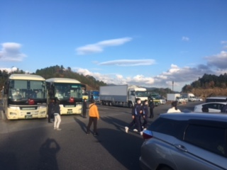 帰路に着きました。土山サービスエリアを15時35分に出発しました。以降休憩は無しの予定です。道路の混み具合によりますが、学校到着は概ね予定通りの見込みです。