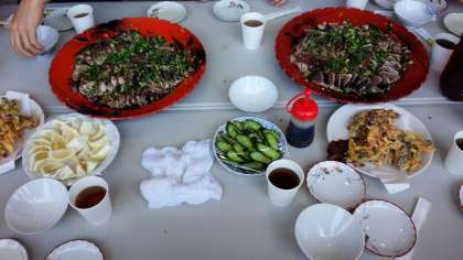 海の幸と山の幸を大皿に盛り付けて出し、取り分けるのが土佐料理。