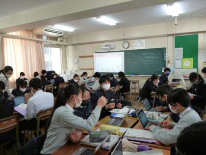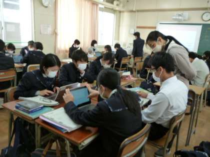 班活動で、学習用端末を使って、世界に偉人や有名人などを調べて、紹介する文章を考えていきます。