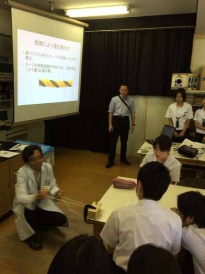 今日は、2年生で、財団法人 大阪科学技術センターより講師をお招きし、エネルギー教室を実施しています。