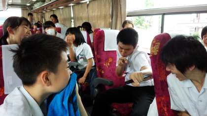 疲れしらずの生徒たちは、バスの中でも音楽に合わせて大盛り上がりです。