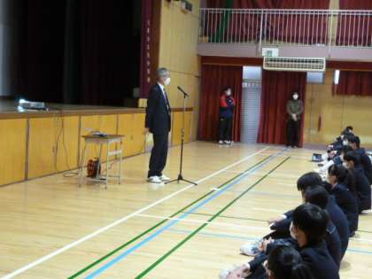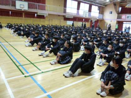 4時限目に全校生徒が体育館に入り、2学期終業式が行われました。