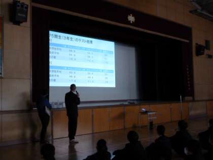 緊張した雰囲気のなかで、校長先生から、1・2学期が終わり、一人ひとりがよく頑張り、成長したと話されました。また、冬休みを通して勉強も頑張るように説明しました。