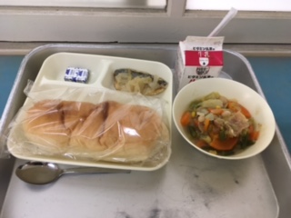 本日の給食は、あじのレモンマリネ てぼ豆のスープ煮 固形チーズ でした。