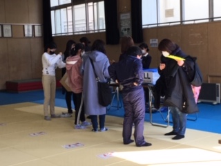 保護者と新入生が続々と来校し、武道場で制服の採寸や体操服の試着がありました。また、カバンやアルトリコーダー、美術の物品等の購入もありました。
