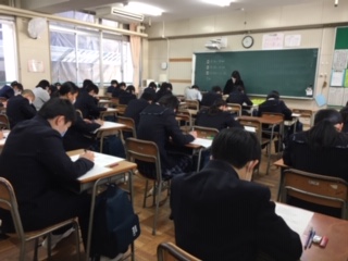 学年末テスト2日目は、1限目理科、2限目国語、3限目技家です。