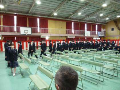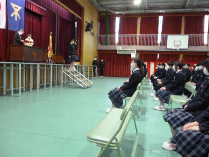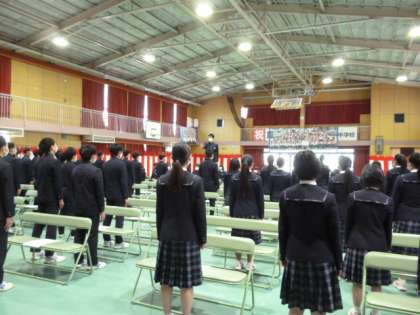 本番さながらに、教職員、生徒会執行委員、2年学級委員が参列し、緊張感のある練習が行われました。明日は、より素晴らしい式ができるように頑張ります。
