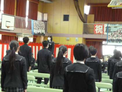 『蛍の光』斉唱の後、卒業の歌です。『3月9日』、『旅立ちの日に』の2曲を歌いました。