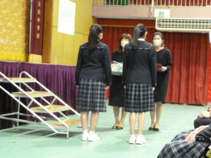 閉会の後には、卒業記念品の贈呈、卒業生保護者の謝辞、花束贈呈がありました。