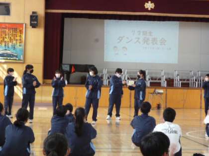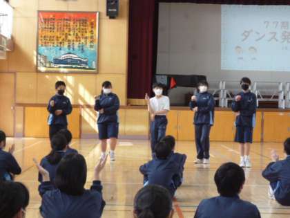 1年生は、5・6限、1年の学年で体育の授業となり、「ダンス発表会」がおこなわれました。