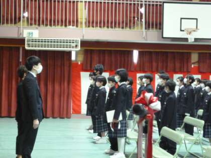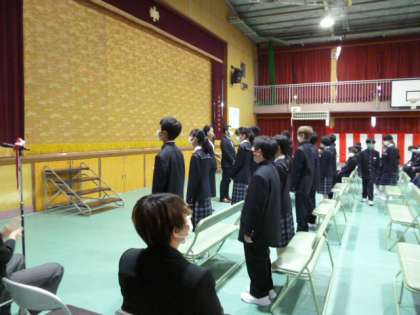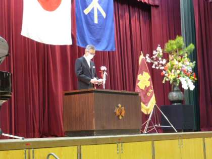 国歌、大阪市歌斉唱の後、校長先生からの式辞を聞きました。