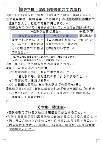 高等学校に行くよい機会です。進路選択の一助となるようにできるだけ多くの参加をお願いします。
