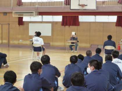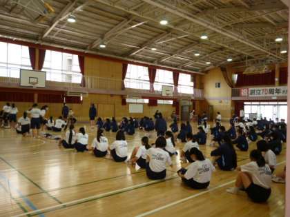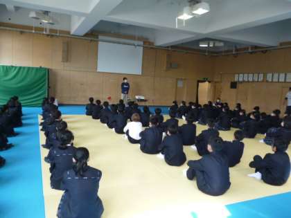 各学年のオリエンテーションで、体育館や武道場で学年集会や発育測定などが行われました。