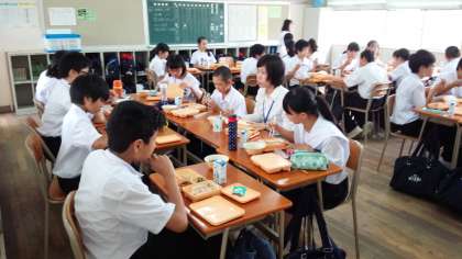 2年生では、実習生の米森さんが、配膳の手伝いをしてくれていました。
