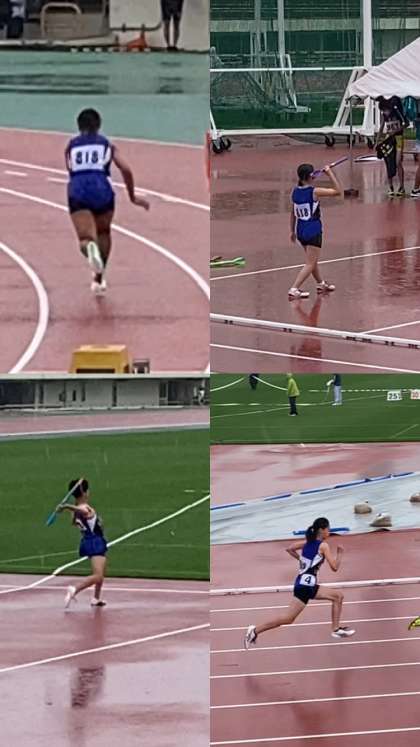 短距離種目では、男子150mに松江君、女子150mに滝本さん、田中さんが出場し、滝本さんは総合2位でした。長距離種目では、男子1000mに清水君、百君、橋本君、女子1000mに上平さんが出場しました。これらの種目は実施されることが少ないので、機会があればぜひ挑戦したいです。フィールド種目では男子ジャベリックスローの井上君が53mを超えるビッグスローで総合1位でした。三段跳の吉村君と小笠原君は、豪雨のため2回目の試技の途中で中止となってしまいました。