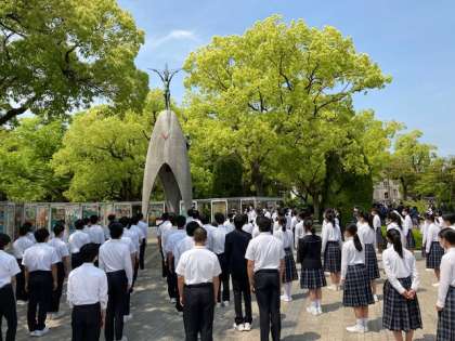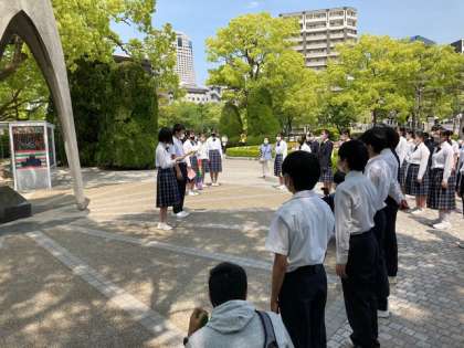 原爆の子の像の前での西中学校平和セレモニー