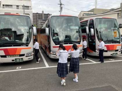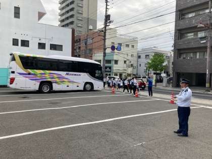 松山市内 道後温泉 集合場所の駐車場に全員戻ってきました。本日は全てのプログラムに天候に恵まれました。4時半に宿舎に向けて出発します。