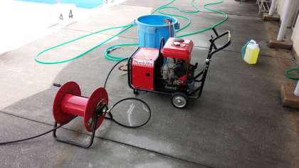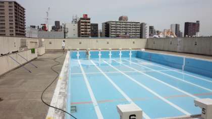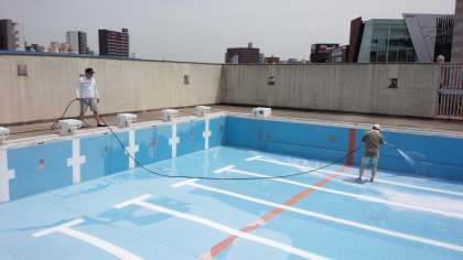 そんな中、管理作業員さんがプール清掃をしてくださっていました。