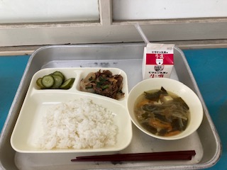 今日の給食は、プルコギ とうふとわかめのスープ きゅうりの甘酢つけ でした。