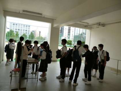 今日は、学校に集合するところから、班活動が始まります。