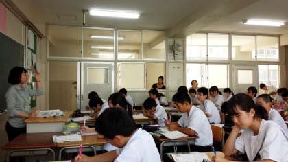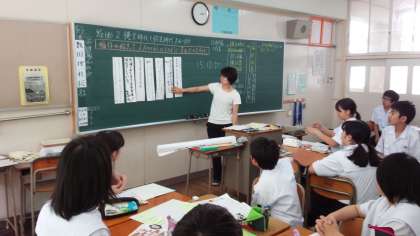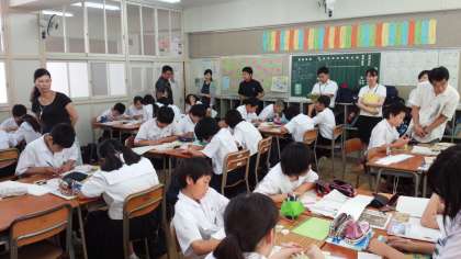 今日は、2年2組の英語と1年2組の社会で研究授業が行われました。