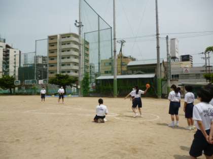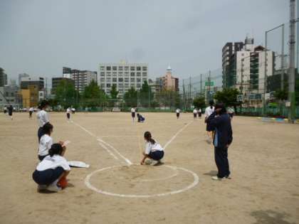 さわやかな晴天のグランドで、3年の体育の授業が行われました。
