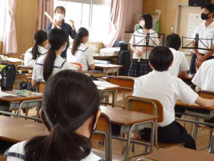 2限目 3−1は音楽の授業です。「エーデルワイス」の曲をリコーダーで演奏しています。アルト、ソプラノの曲調や、リコーダーの吹き方の違いなどを聴き取ることも教えてもらいました。