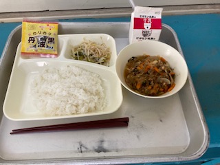 今日の給食は、マーボーはるさめ チンゲンサイともやしの甘酢あえ いり黒豆 でした。