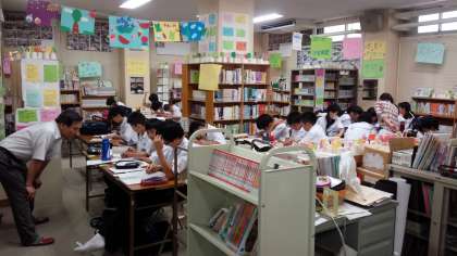 図書室を覗くと、1・2年生を中心に、熱心に学習している様子が見られました。