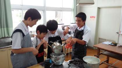 男子も女子も、班のメンバーがしっかり協力して調理していました。